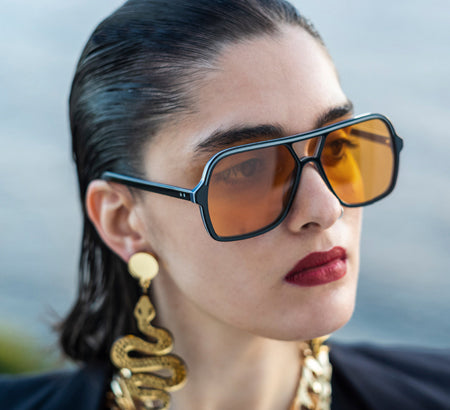 Spitfire Collection featuring Optical Grade Cellulose Acetate Frames Cut from the Block with Distortion Free 100% UVA/UVB Safe Lenses. Ships with Custom Sunglass Case.